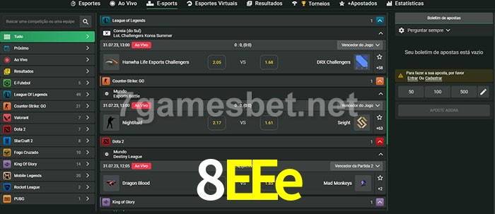A aposta 8EEe oferece aos jogadores a experiência mais conveniente de apostas em eSports!